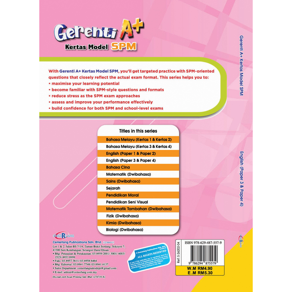 With GerentiA+ Kertas Model SPM, you’ll get targeted practice with SPM-oriented questions that closely reflect the actual exam format. This series helps you to: