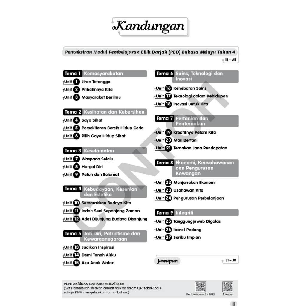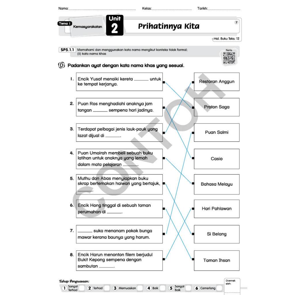 Buku Teks, Nota sistem bahasa dalam bentuk QR, Standard Pembelajaran (SP) & Tahap Penguasaan (TP), Berbentuk modul yang boleh dileraikan, Jawapan lengkap disediakan